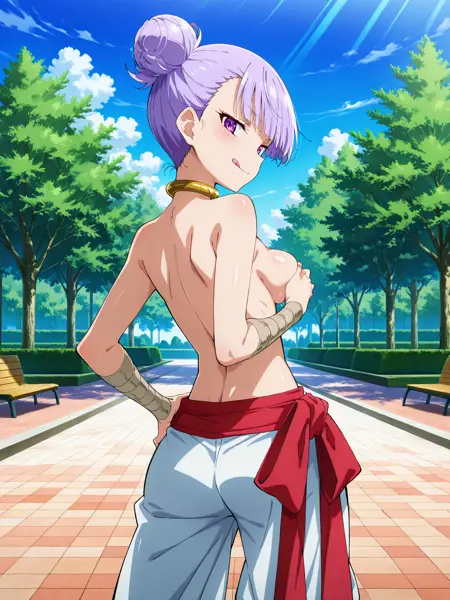 The dataset does not have any colored page of her, so please keep in mind that you are the one who control all colors, like her outfit, her eyes, and her hair.