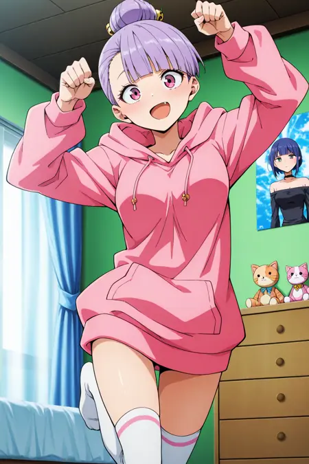 The dataset does not have any colored page of her, so please keep in mind that you are the one who control all colors, like her outfit, her eyes, and her hair.