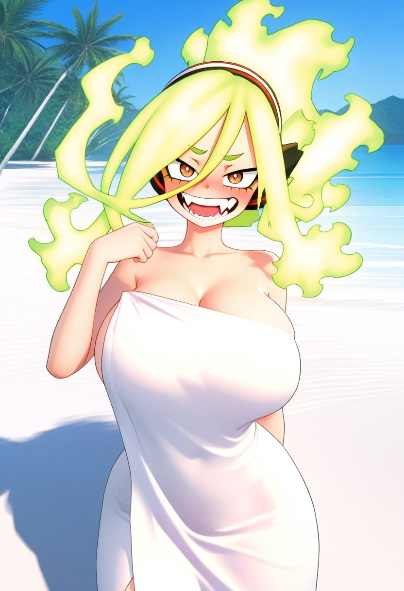 (上路萌, 카미지 모에), 별명은 버닝(Burnin, 바ーニン),는 프로 히어로이자 30명 이상의 조수 중 한 명이었다.