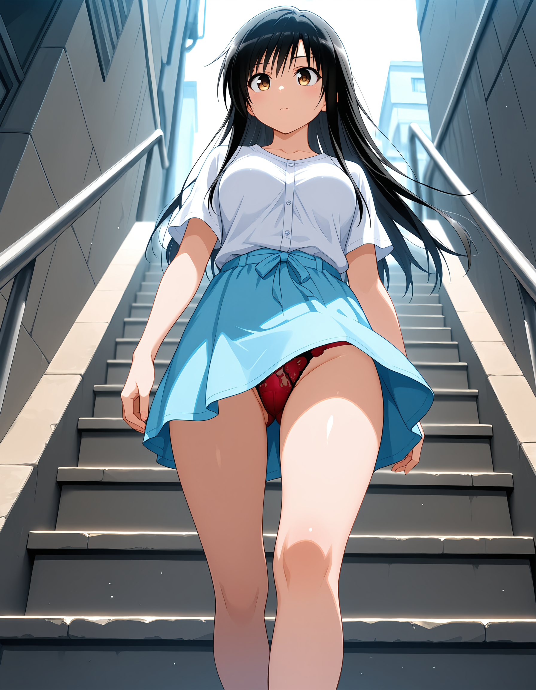panty-shot on stairs-illustrious.safetensors