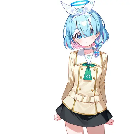 arona, 青い目, 青い髪, 短い髪, 片側の編み込み, 片方の目に髪がかかる, ハロー, 白い首輪, 白いヘアバンド