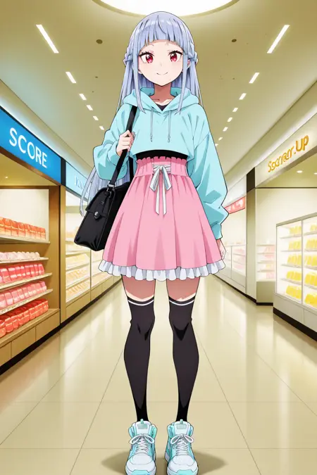 The dataset does not have any colored page of her, so please keep in mind that you are the one who control all colors, like her outfit, her eyes, and her hair.