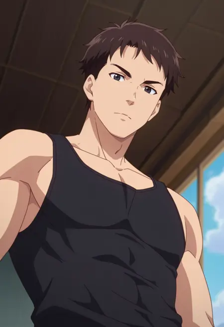 han wenqing, brown hair, black eyes, short hair