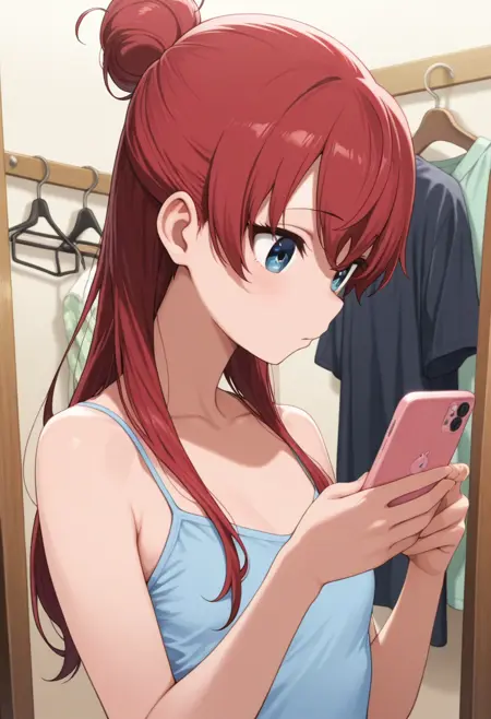 :sakaki shizuka,红发,蓝眼,长发,单发髻