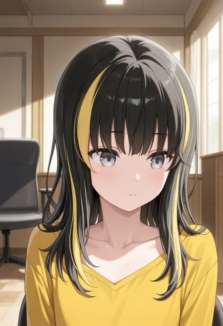 :andou tsubaki,长发,金发,黑发,多色发,挑染发,灰眼