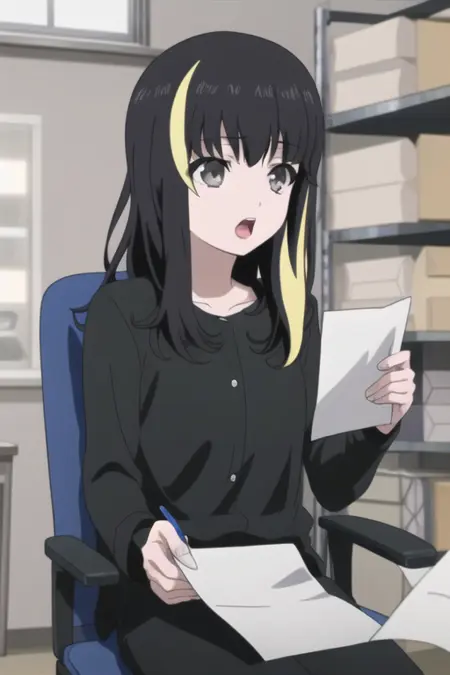 :andou tsubaki,长发,金发,黑发,多彩发色,挑染发,灰眼睛
