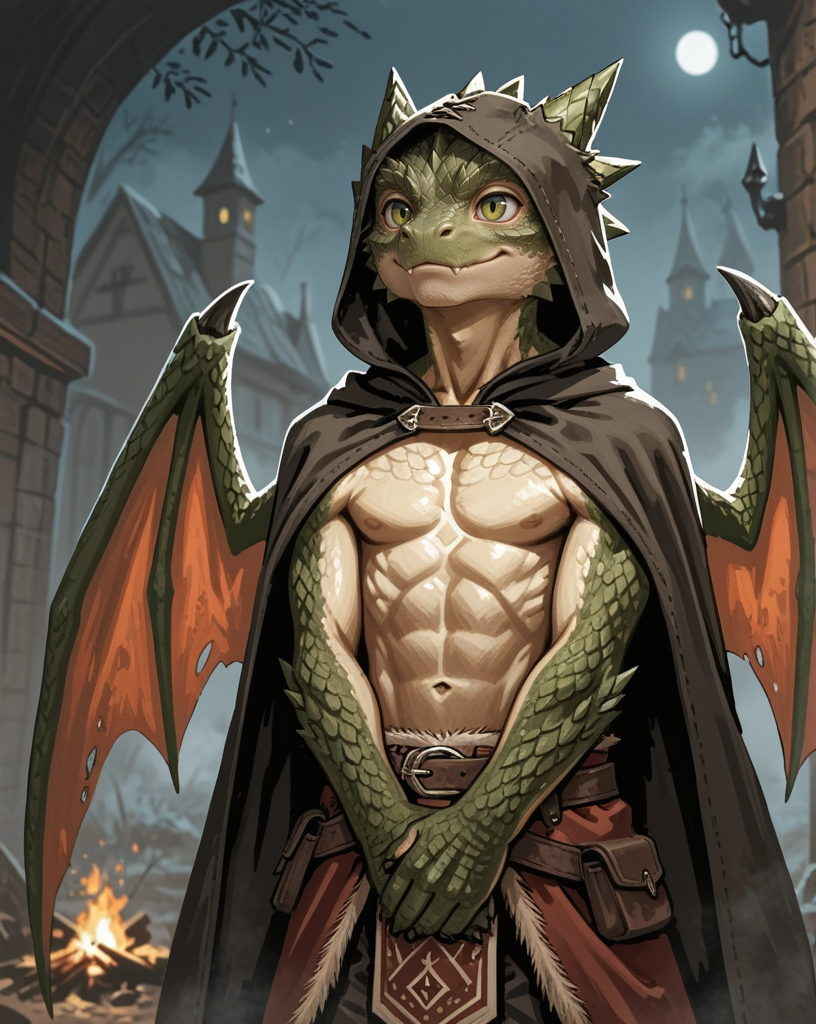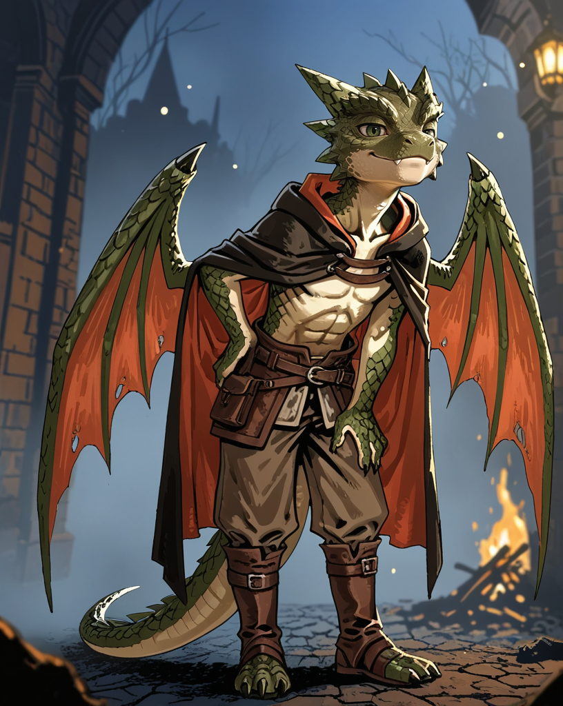 ジラクシオは、D&D 5eのキャンペーン**「失われたフェンデルバー鉱山」**における、グループのバードであり、孔雀でもある。威圧的な体躯とモスグリーンの鱗を備えたドラコニックで、その存在は矛盾そのものだ:王の傲慢さ、悪魔の舌鋒、そして決して空を飛ばない、見事な二つの翼。彼は拍手、次の一杯、観客の瞳に輝く光のために生きている……空の沈黙をかき消すためなら、何でも。🔥「地下のドラゴンが心配?ねえ、本当のショーはここにあるのよ。最初の一杯は私のご馳走よ。」