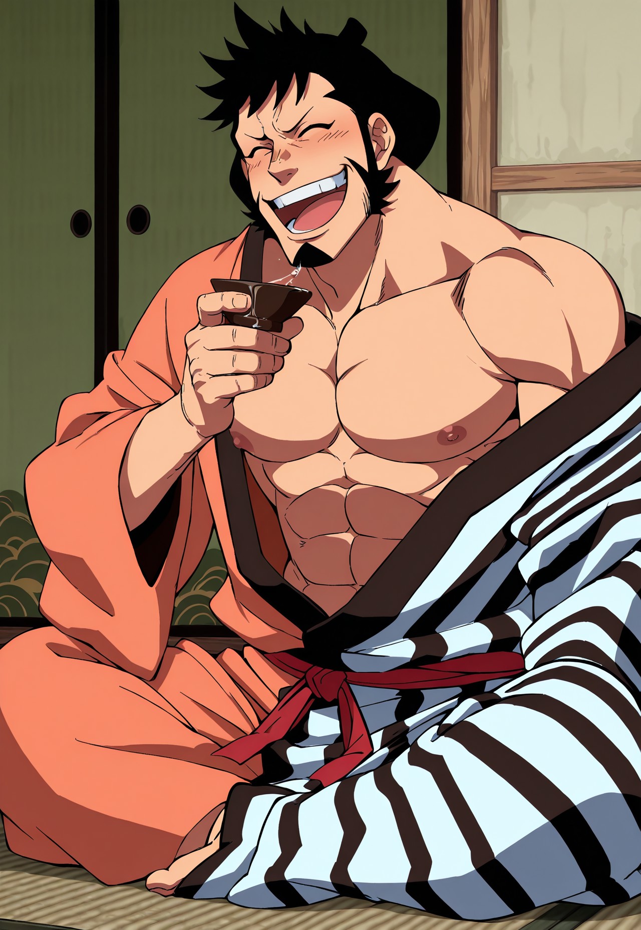 OPKinemon、黒髪、顎ひげ、和服、口ひげ、着物