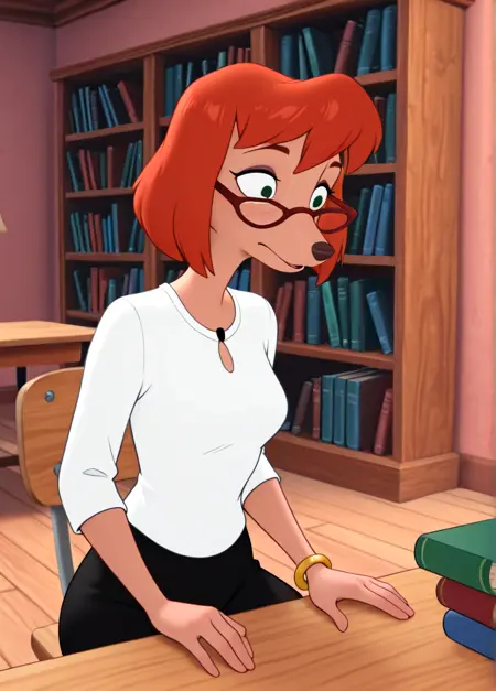 1girl, solo, furry female, snout, red hair, short hair, bangs,