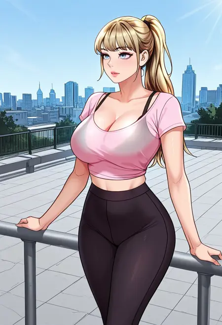 Le-Na: le-na, beautiful blonde hair, ponytail, bangs, huge and shaggy breasts, piercing light blue eyes, / beautiful long hair,