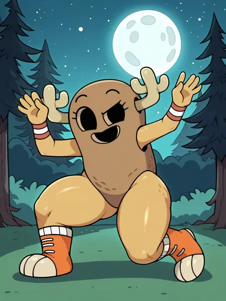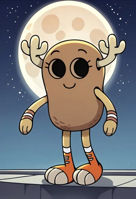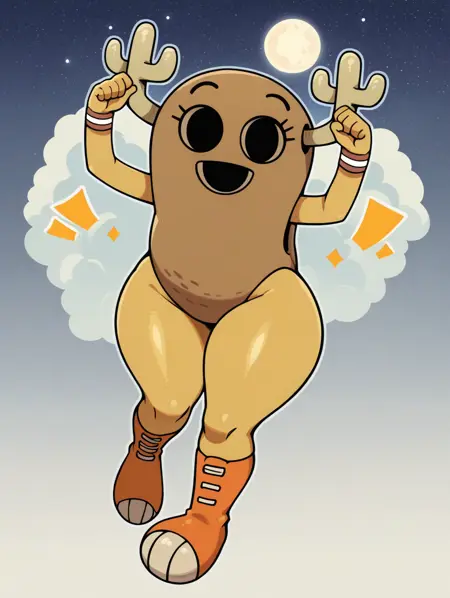 Penny_Shell, humanoid peanut, peanut body, shell body, brown shell, hole eyes, no neck, 2 horns,