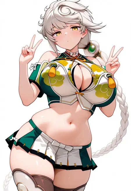 unryuu \(kancolle\), 黄色い目, 白い髪, 長い髪, 非常に長い髪, 髪飾り, 単一の編み髪, 大きな胸, 胸元の露出,