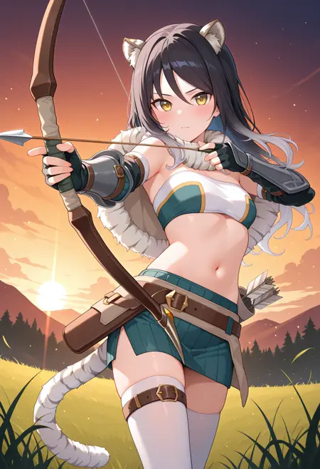 Character LoRA for Shiori, beastfolk girl with frail constituition from Elisabeth Park. Hatsune's sister.