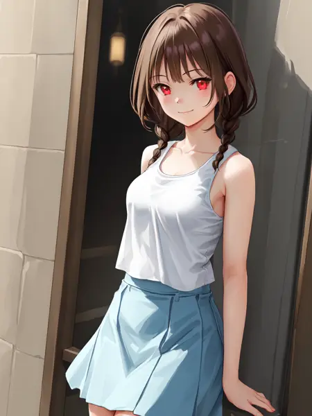 本次训练集采用的是Pixiv上mignon老师绘制的极高质量插画。mignon老师笔下的人物面部细节,尤其是眼睛极具特色。可惜的是作者技术能力有限,LoRA仅在肖像等怼脸距离时能较好还原眼部细节,一旦镜头拉远,便只能大致保留轮廓上的相似性。