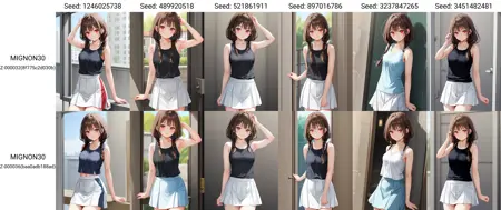 在正常绘图,尤其是绘制面部时,可同时使用“mignon30”与“mignonh9”;若皮肤暴露面积较大,则可添加“mignon30”、“mignonb9”与“mignonh9”三者,可根据实际需求灵活调整。虽然对画面影响不会特别显著,但多少会更贴近原画风格。