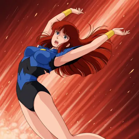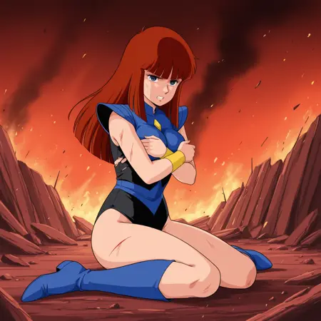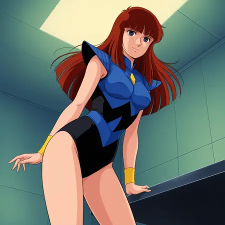 leotard, shoulder pads, sleeveless, wristband, knee boots,