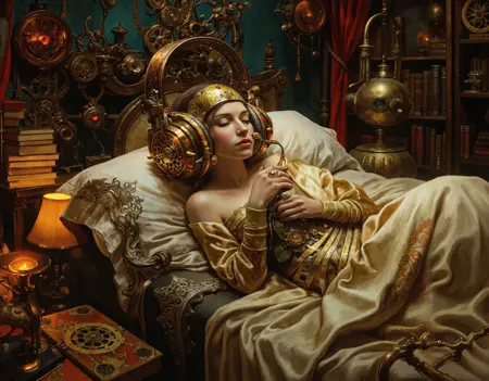 它展现了精致的金属点缀、平滑的渐变、云雾般广袤的背景、复杂的纹理以及引人入胜的花卉树木。光影在每一个细节上优雅舞动,邀请观者探索一个令人着迷的世界。这种风格专为增强超现实与抽象绘画风格而设计。