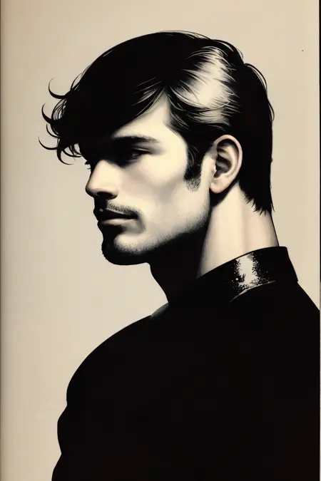 Trigger token: homoairotic illustrationOther tags that you can optionally include: traditional media, graphite, graphic detail, homoerotic, stipple, authoritarian, tom of finland, male focus, ink \(medium\), silhouette, simple background