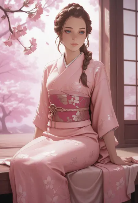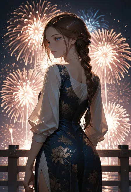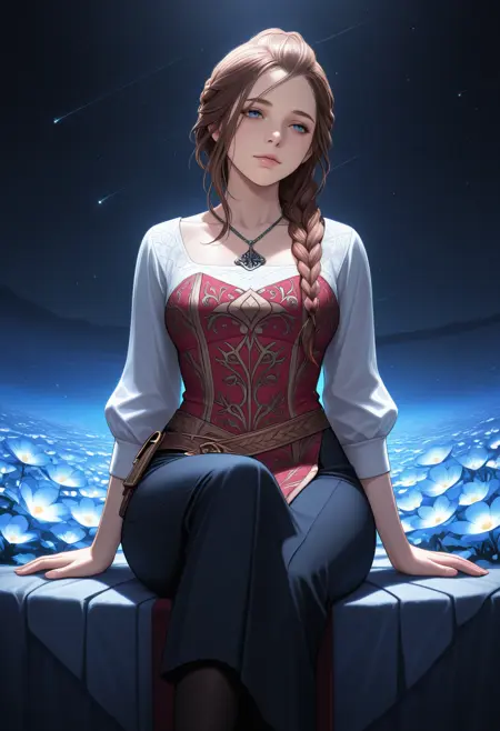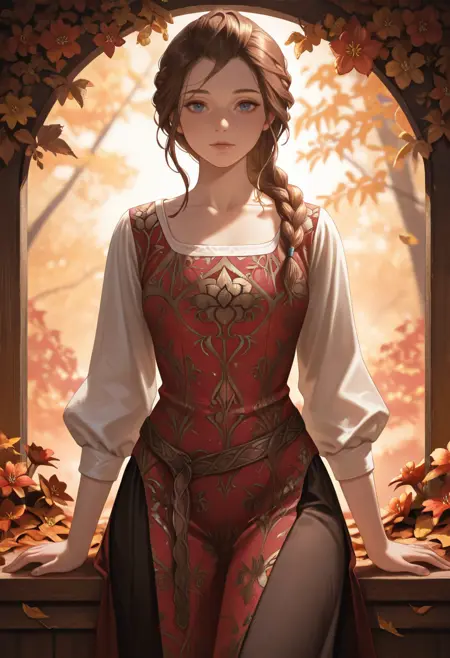 PAmicia, 1girl, brown hair, single braid, long hair, blue eyes