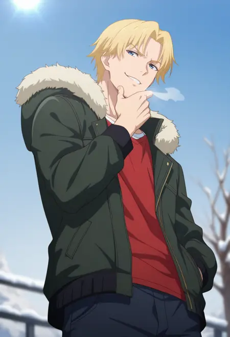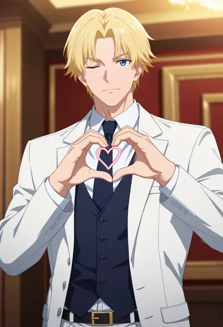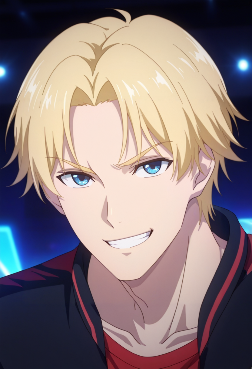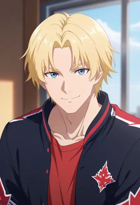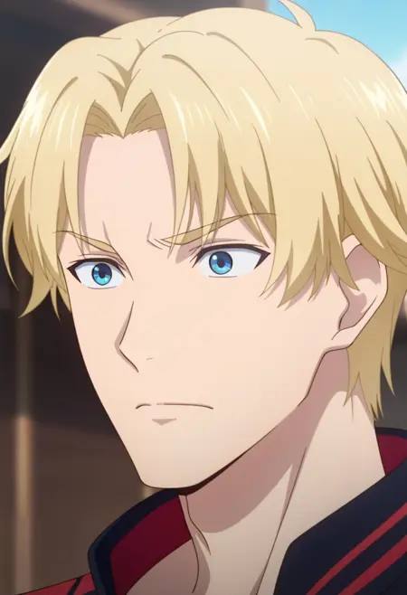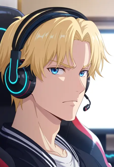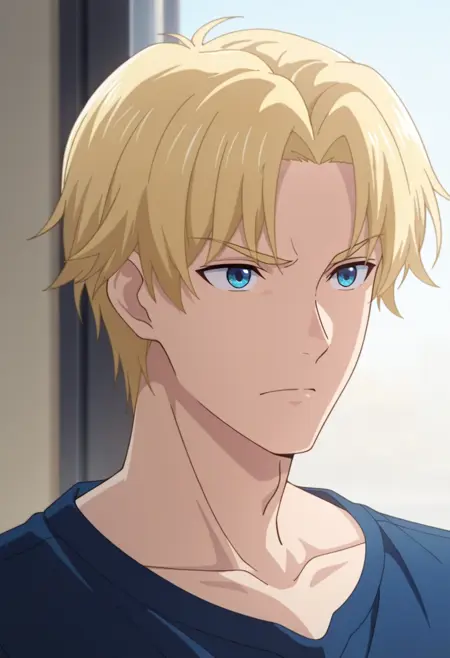 sun xiang, blonde hair, blue eyes, short hair, parted bangs