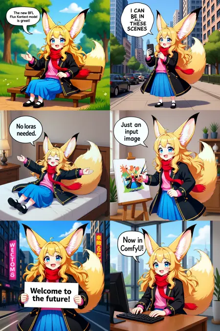 워크플로우: https://comfyanonymous.github.io/ComfyUI_examples/flux/flux_kontext_example.png