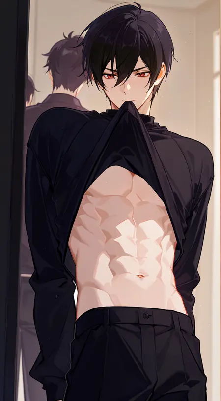 触发词:衣服提升、衬衫提升、衬衫、自体提升、胸下、口持、衣物入口、腰部、手伸入衬衫、手伸入衣物、提升他人衣物、衣物拉动