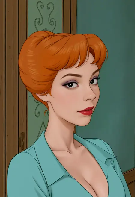 Keywords: anitaradcl, orange hair, short hair, updo, black eyes, makeup, lipstick