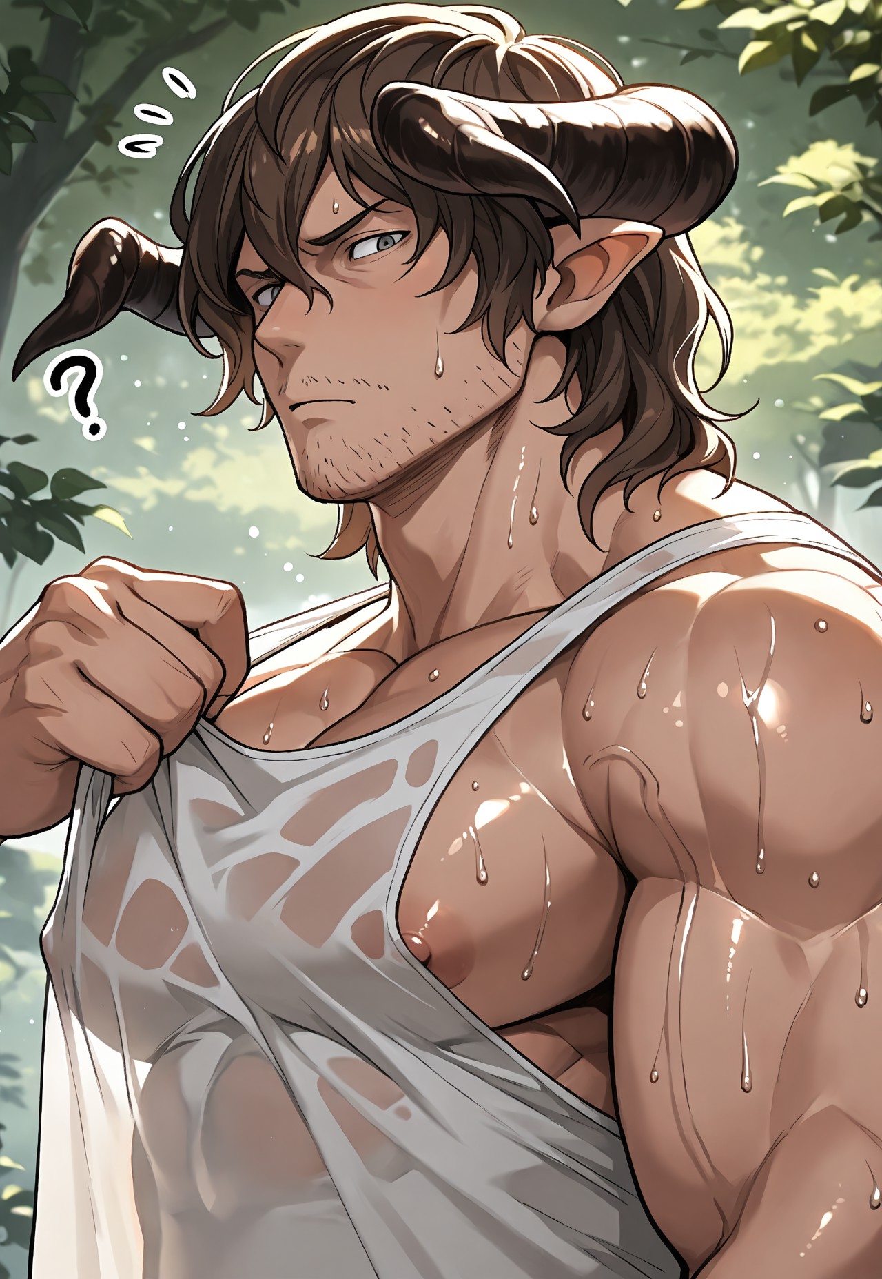 기본: borg3r_gbf, 갈색 머리카락, 뿔, 뾰족한 귀, 회색 눈, 수염