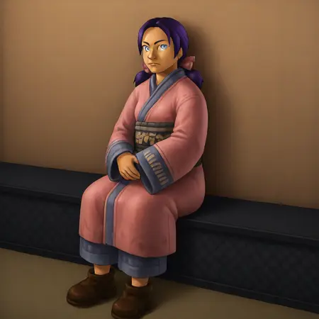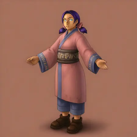 1个女孩,独处,紫色头发,短双马尾,发带,蓝眼睛,和服,腰带,裤子,棕色鞋子