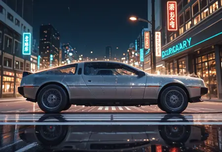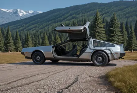 ベースモデルの清潔な生成にはトリガー `dlrnCFH` を使用してください——あの象徴的なシルバーのくさび型のタイムカプセル車。