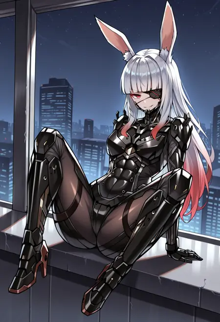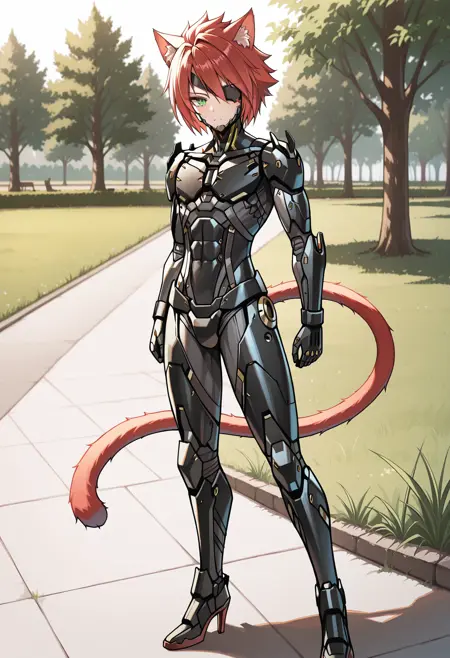 触发词:raidenmgr,cyborg,armor,high heels,full armor,mechanical chin,eyepatch,