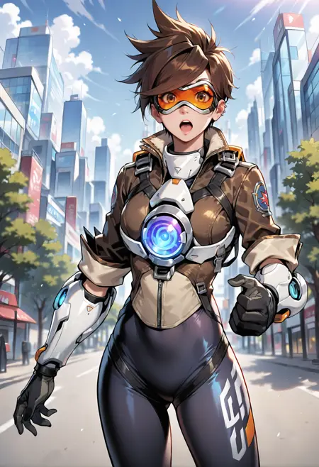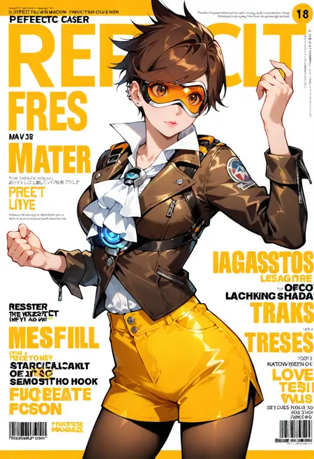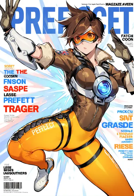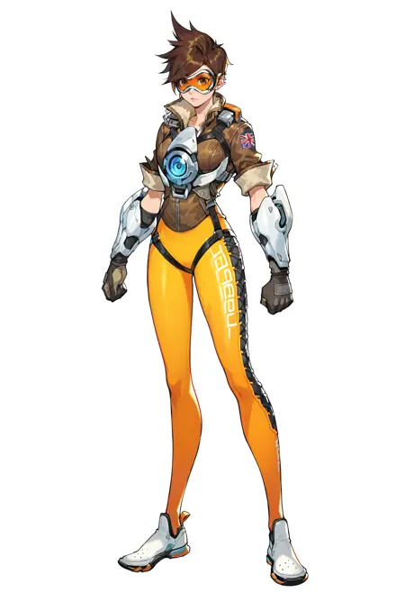 가슴 하네스, 팔보호대, 장갑, 꽉 끼는, 소매를 올린, 신발, 털 장식, 꽉 끼는 바지, 가죽, 가죽 재킷, 갈색 재킷, 바지, 옷에 글자, 짧은 소매, 몸에 꼭 붙는, 끈, 가슴, 귀 뚫음, 갈색 장갑, 흰색 신발, 검은 장갑, 유니언 잭, 안경, 버머 재킷, 주황색 안경, 주황색 바디수트, 재킷, 바디수트, 십자로 끈으로 묶인 다리 착용, 하네스, 십자로 끈으로 묶인 옷