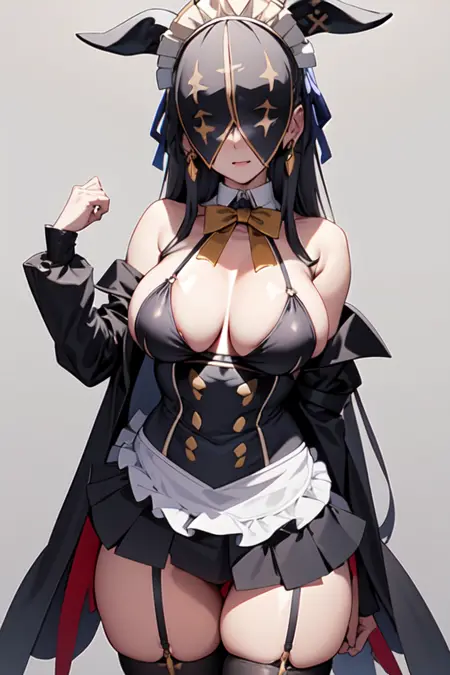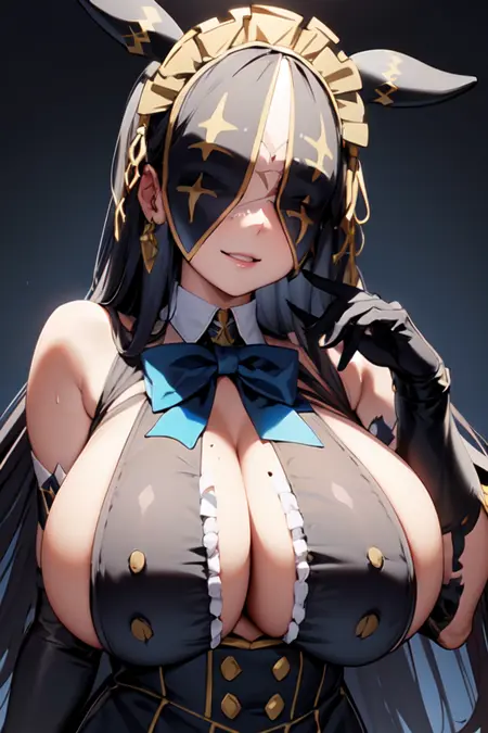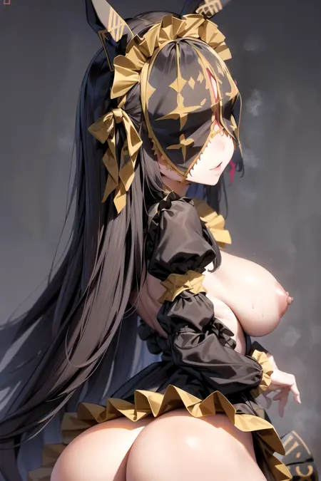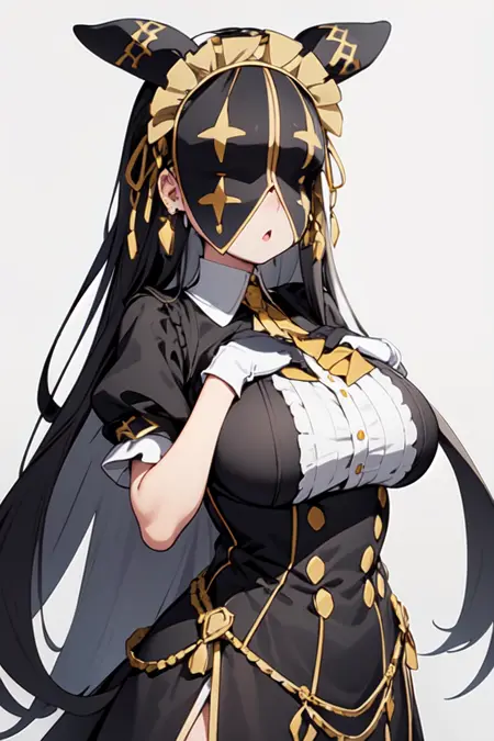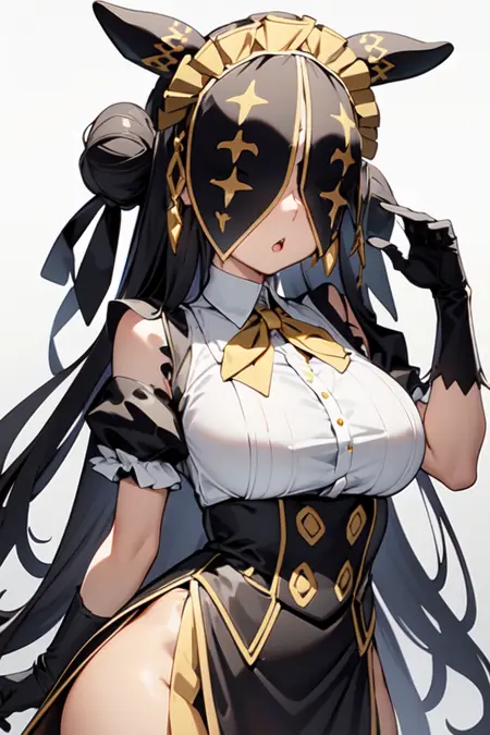 デザインを変えずに異なる衣装を生成したい場合、以下をお勧めします:Pestonya_OV、フェイクの犬の耳、長い髪、黒髪、頭部装飾、マスク、傷、目隠し、, high_res