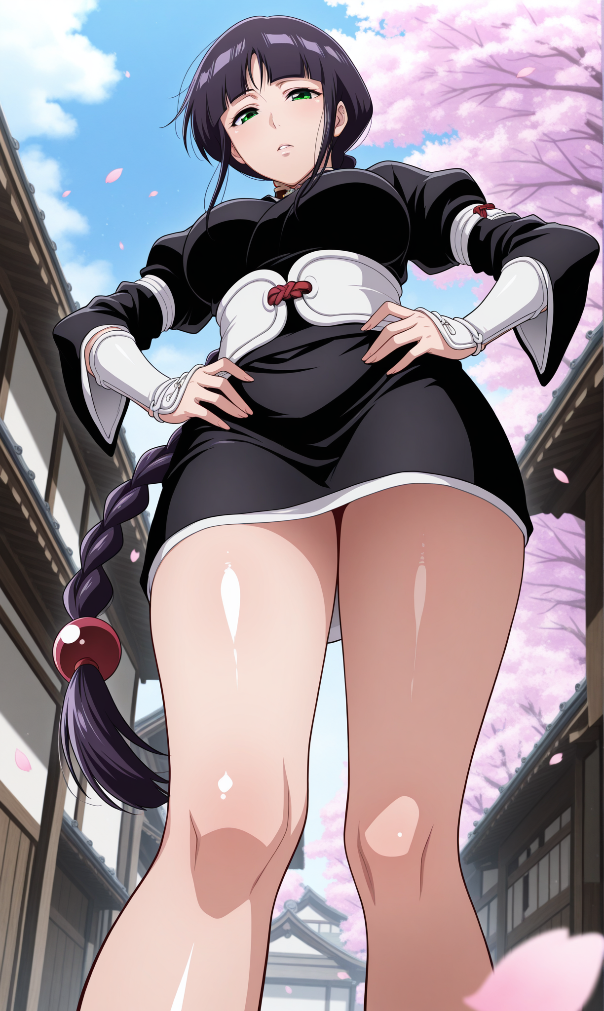kurotsuchi nemu, 绿色眼睛,单辫子,齐刘海,黑发,紫发,长发,编发马尾