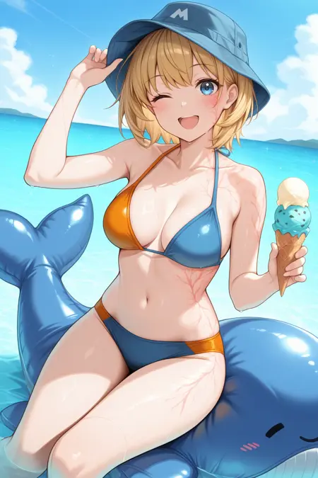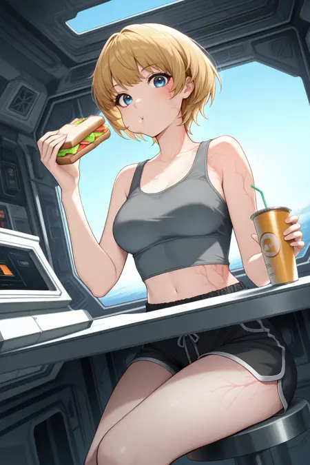 外見:apxwtsn、頬の傷、中程度の胸、青い目、金髪、短い髪