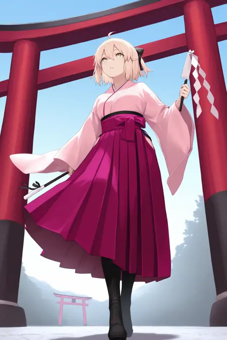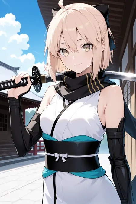 Fate/Grand Orderの沖田総司。Illustrious-XL v0.1 で学習済み。強度0.8-1.0でテスト済み。