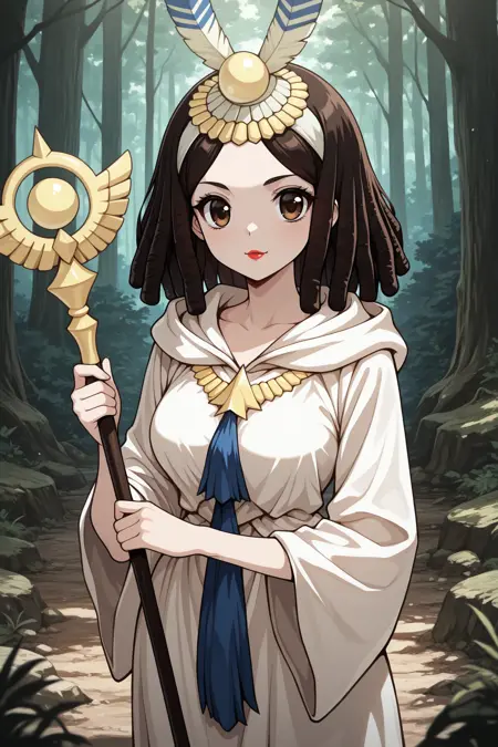Trigger word is "amlys" and "dark brown hair, medium hair, dreadlocks, light skin, brown eyes" is required.