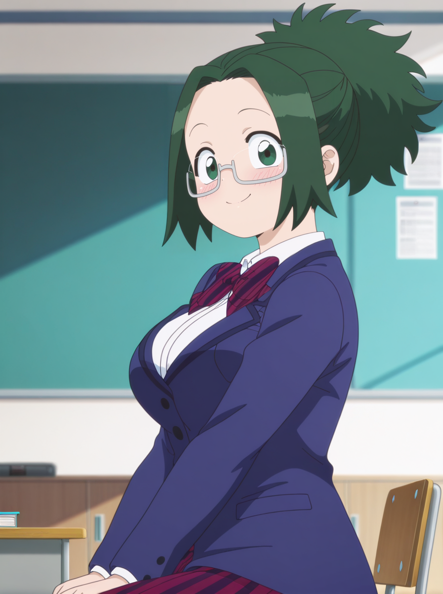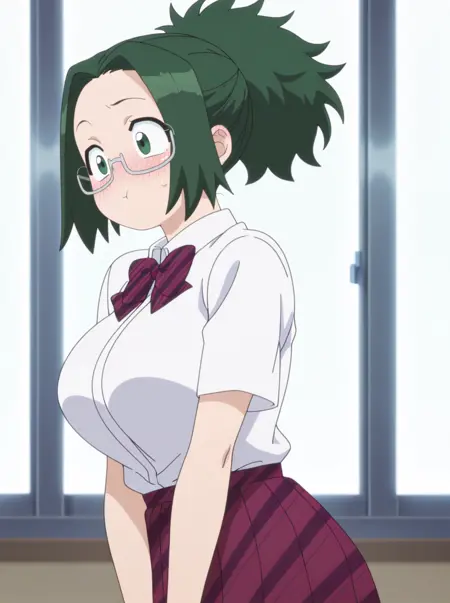 主要外观:1个女孩,绿色头发,眼镜,单人,半框眼镜,绿色眼睛,马尾