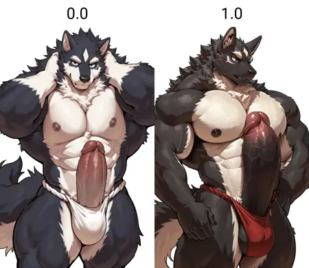 强度建议拉到0.7–1,当处于0.7–0.8之间画面相比于不用LoRA的情况不会改变太多元素,但是可能会让penis没那么硬。