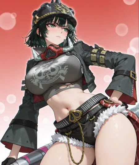 shirt, black gloves, long sleeves, gloves, jacket, open clothes, open jacket, black jacket, crop top, black shirt, torn clothes, cropped jacket, spikes, grey shirt,
