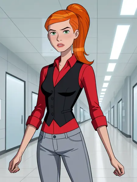 | 训练词汇 | gwen,orange hair,long hair, small breasts, anime screenshot, green eyes,makeup, lipstick,已复制! gwenDress,white shirt, collared shirt,blue sweater, shirt under sweater, black pencil skirt, black pantyhose,black high heels,已复制! gwenredDress, high ponytail, red shirt, collared shirt, black vest,shirt under vest, gray jeans已复制! gwenWhite,bare shoulders, strapless dress,white long dress,已复制! |