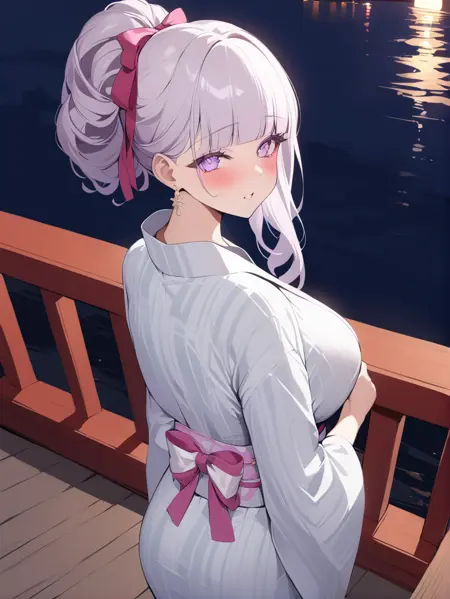 원본(origen): plymouth_\(azur_lane\), 보라색 눈, 머리 장식, 흰색 드레스, 흰색 장갑,