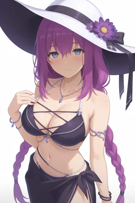 オプション:white_hat, sun_hat, hat_flower, black_sarong, side_slit,