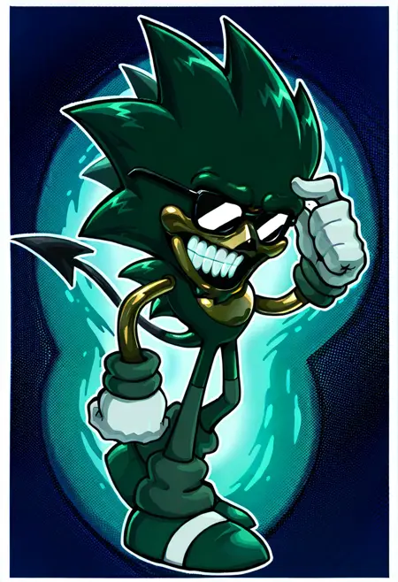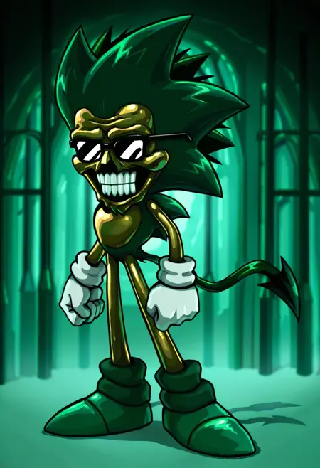 | 训练词汇 | B3MajinFNF, 1boy, slim anthropomorphic hedgehog, green fur, disturbing, human-like face, three long quills on the back of head, golden-tan skin, horror, 2 black demon tails, black glasses, sonic the hedgehog, big dark green socks, green shoes, white gloves,已复制! |
