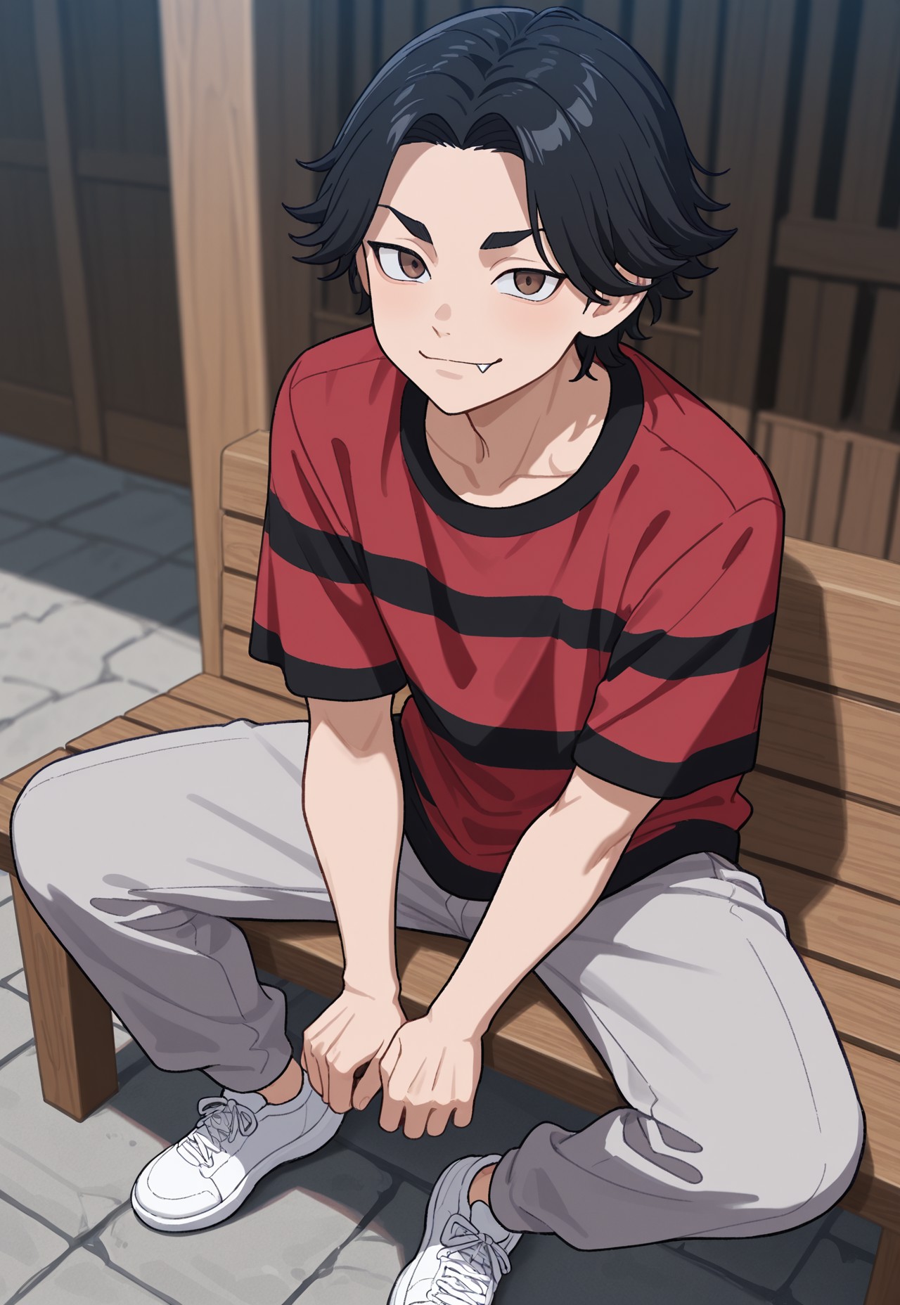 | 학습된 단어 | TRYoBaji, 1 boy, male focus, black hair, short hair, curtained hair, wavy hair, thick eyebrows, brown eyes, Official alternate outfit, striped shirt, black shirt, red shirt, two-tone shirt, short sleeves, grey pants, white sneakers,복사됨! TRToBaji, 1 boy, male focus, black hair, short hair, curtained hair, wavy hair, thick eyebrows, brown eyes, black collared shirt, long sleeves, kanji, white belt, black pants, pants tucked in, white boots복사됨! |