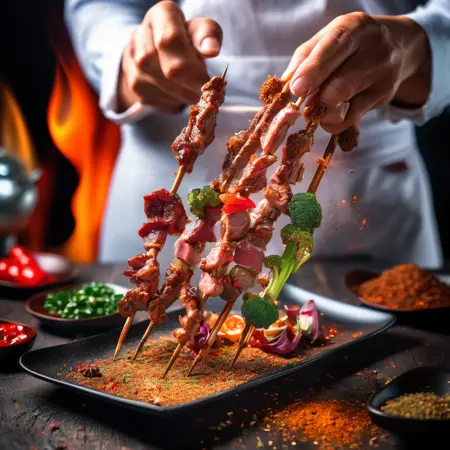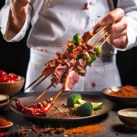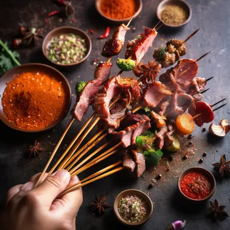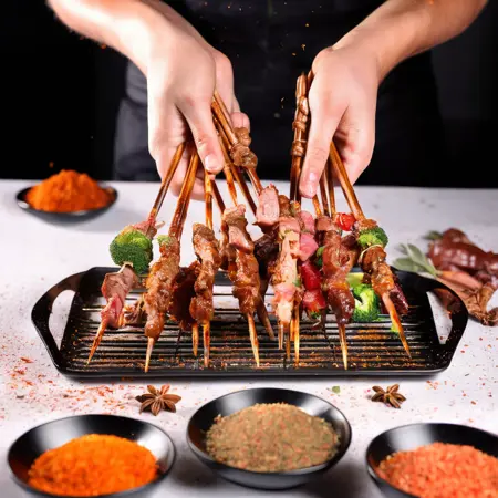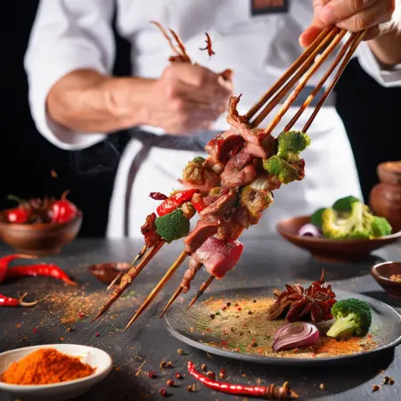 新疆羊肉串,又称“羊肉串”,是中国新疆地区的一道美味佳肴。这道菜不仅仅是串起来的羊肉,更是融合了风味与口感的完美结晶,体现了维吾尔料理的精髓。羊肉经过孜然、大蒜及其他香料的腌制,串在竹签上,用明火烤至完美。外皮焦香酥脆,内里多汁嫩滑。通常搭配馕饼和新鲜香草一同食用,无论是在街头小吃摊还是家庭聚会中,都是不可或缺的美食。这不仅是一道菜,更是一种体验,带你穿越至多元文化与风味交汇的丝绸之路。