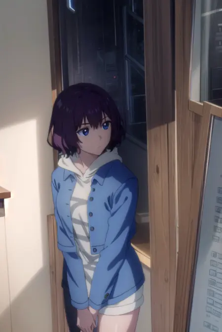 tang rou、ショートヘア、(パープルアイ:1.1)、パープルヘア、