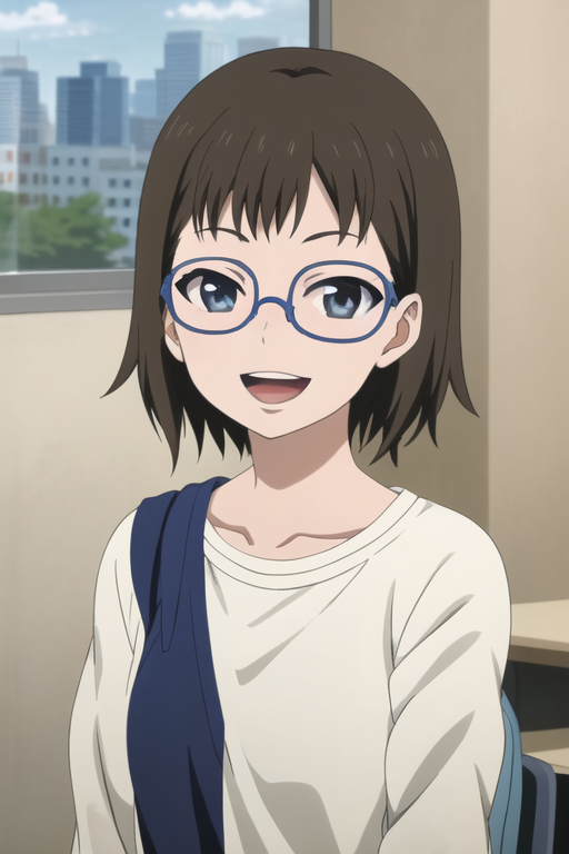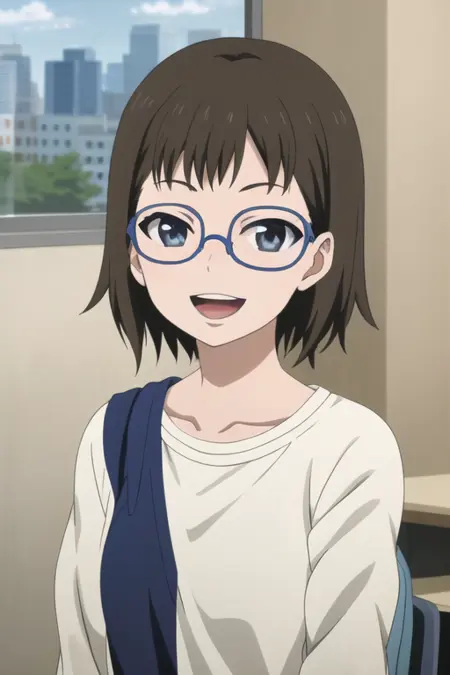 :iguchi yumi,短发,棕色头发,蓝眼睛,眼镜,蓝色镜框眼镜