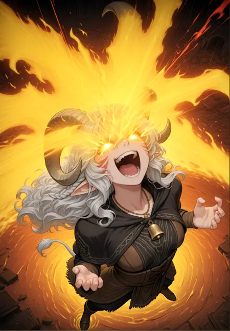 A prayer originating from the Three Frenzied Fingers, it spews forth a yellow, frenzied flame from the eyes.