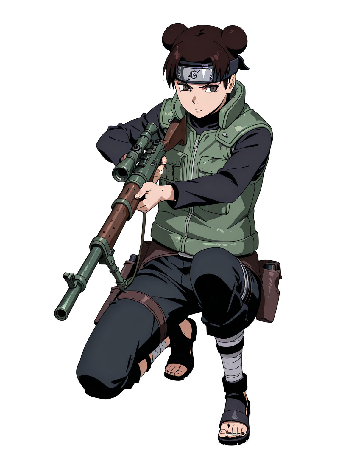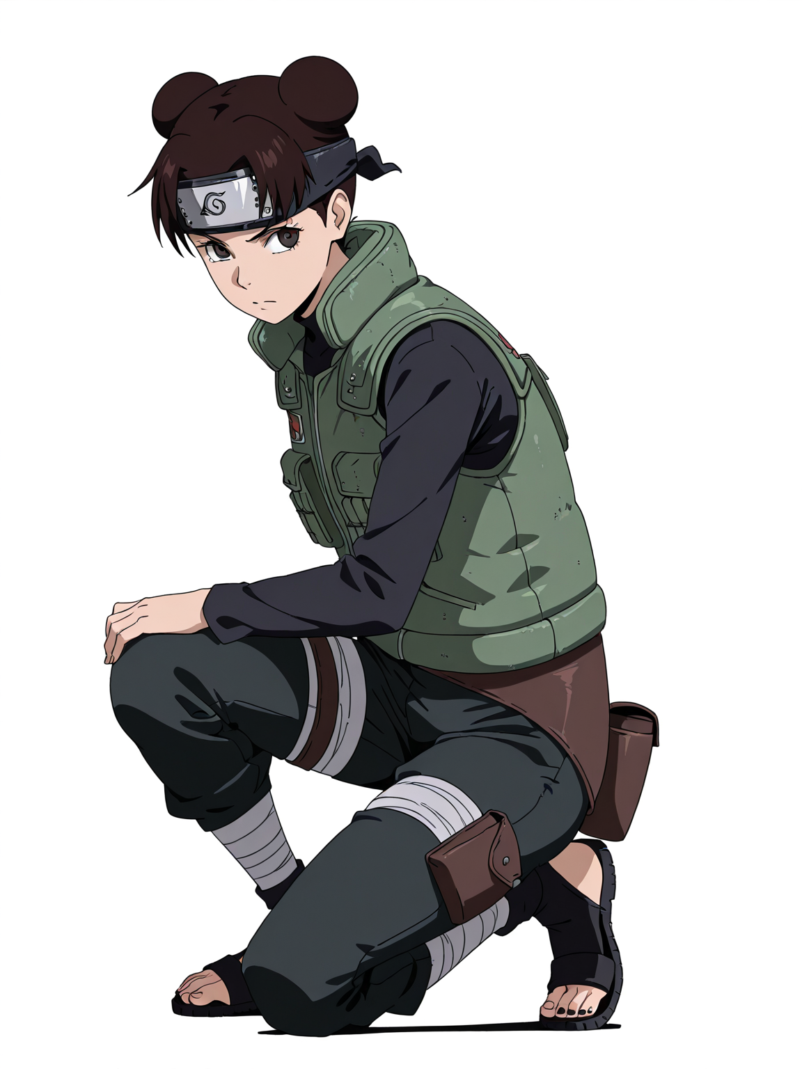outfit4, flak jacket, green vest, utility vest, black shirt, black pants, legstrap, brown belt, pouch, black sandals